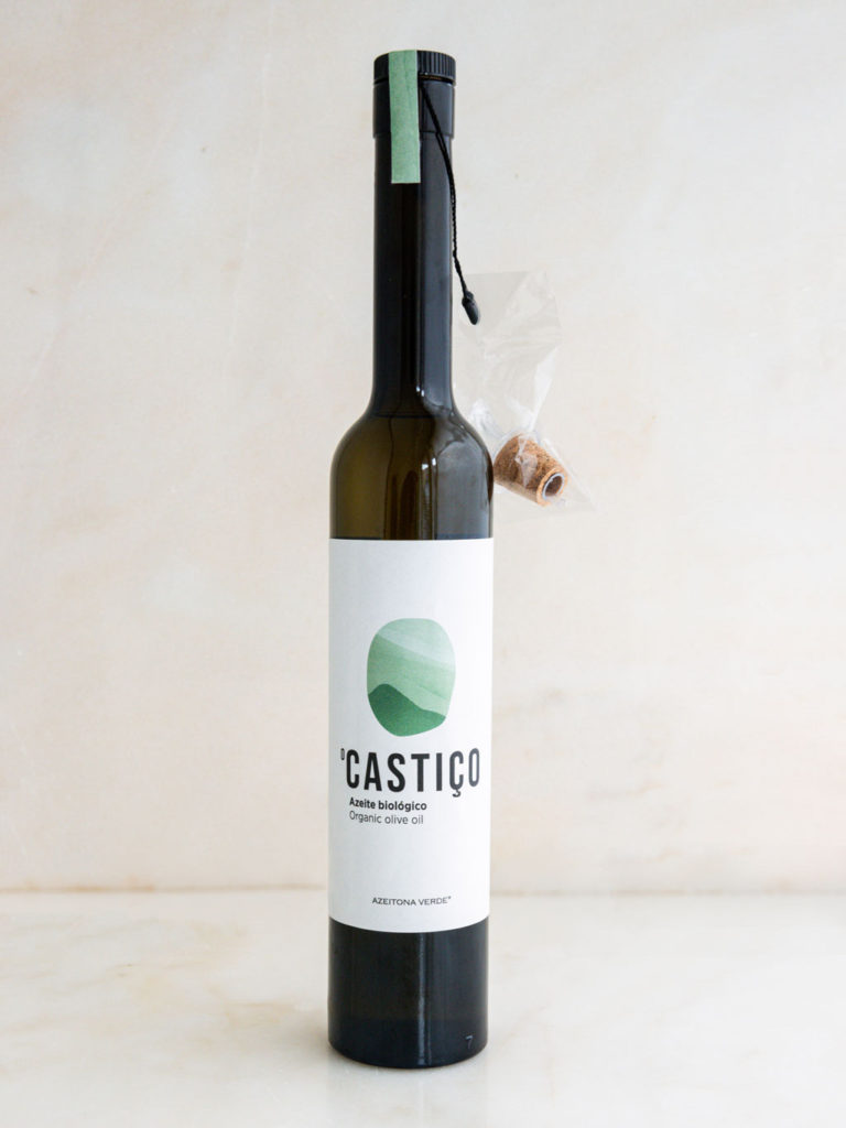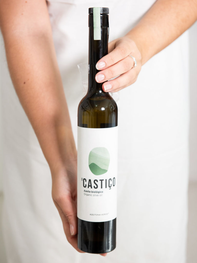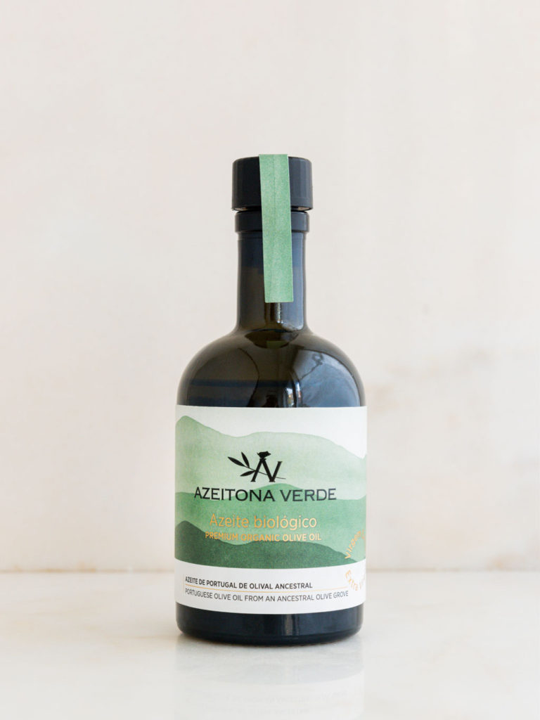 O azeite biológico virgem extra Azeitona Verde é uma suave mistura ancestral entre o doce, o verde e o picante das azeitonas Galega e Cordovil.